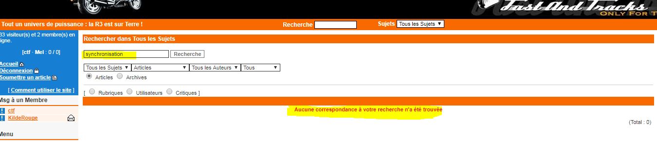 Pour la fonction recherche , il faut utiliser celle figurant dans le sous-onglet "forum" .
